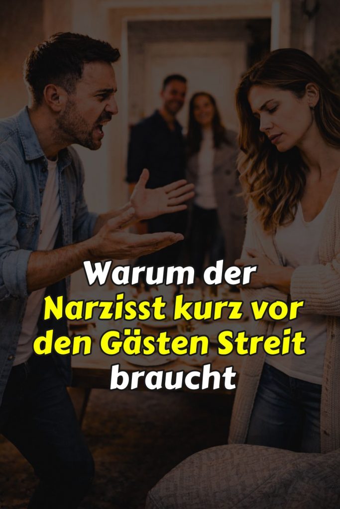 Der Abend mit den Gästen ist für ihn eine Bühne. Er will der Star sein. Wenn ihr beide als glückliches, gleichberechtigtes Paar auftreten würdet, müsste er das Rampenlicht teilen. Aber durch den Streit kurz vorher hat er eine unsichtbare Dynamik geschaffen: Du bist verunsichert, vielleicht wirkst du fahrig, still oder sogar ein bisschen „zickig“, weil du verletzt bist.