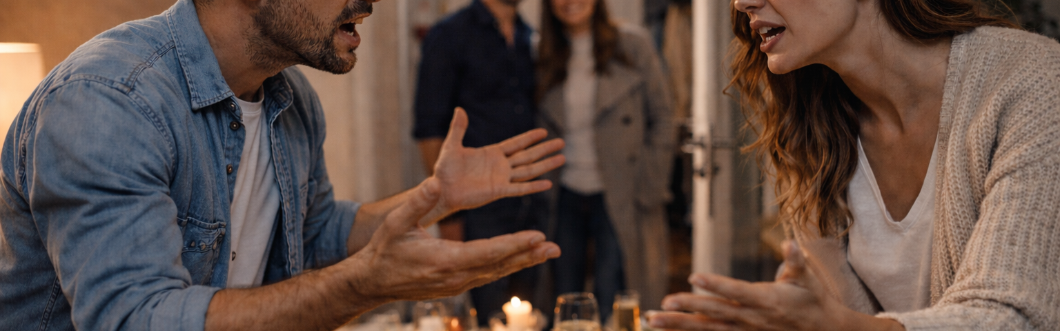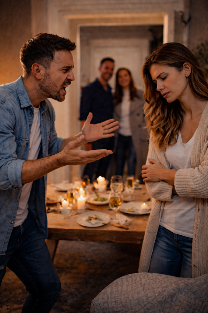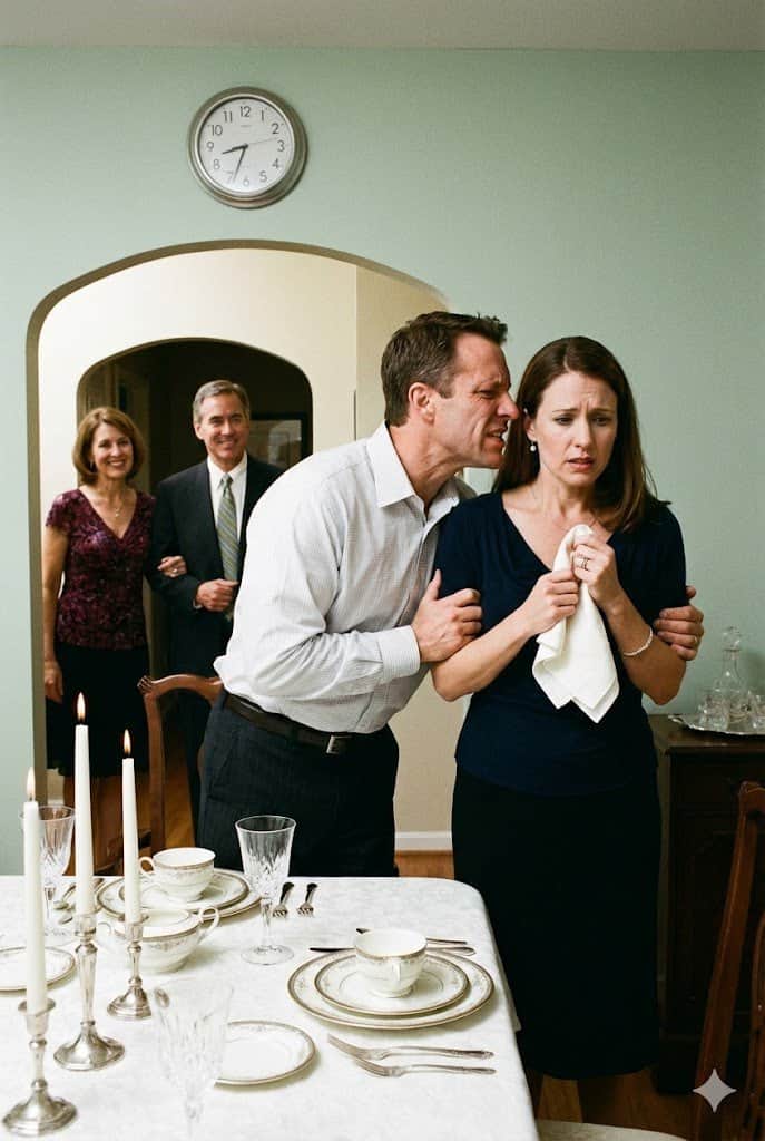 Er hingegen wirkt souverän und ruhig. Gegenüber den Gästen entsteht so ein subtiles Bild: „Seht her, wie toll er ist, und sie… naja, sie ist wohl etwas labil oder schlecht gelaunt.“ Er gewinnt das soziale Spiel, indem er dich vorher sabotiert hat. Du bist damit beschäftigt, nicht zusammenzubrechen, während er glänzen kann.
